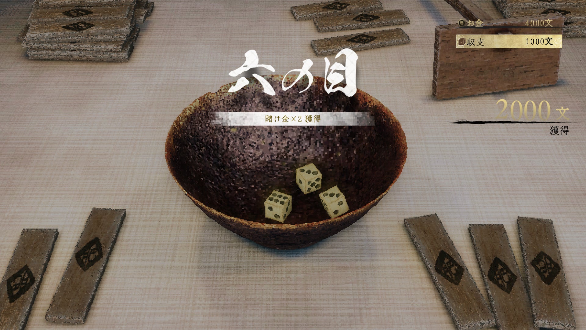 「チンチロリン」とは、 3つのサイコロを投げて出目を決めるミニゲーム。