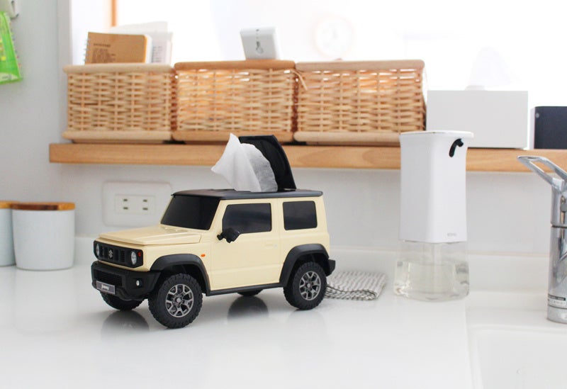 スズキの人気車「ジムニー シエラ」を再現したウェットティッシュケースがリニューアル。