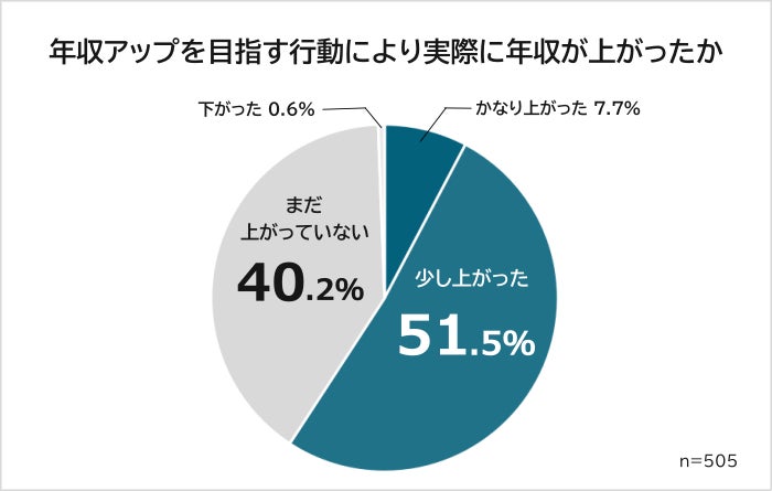 ただ、「少し上がった」「まだ上がっていない」と感じている人も多く、大幅な年収アップには継続的かつ段階的な取り組みが必要であるという現実もわかります。