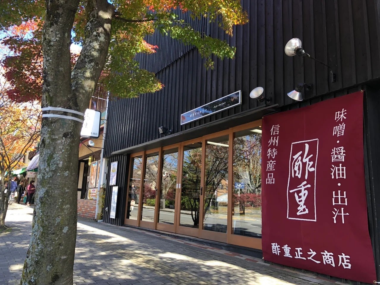 旧軽井沢銀座通りの出発点となる旧軽井沢ロータリーにある「酢重正之商店」では、味噌、醤油、出汁、味噌を使った惣菜や信州の名産品、毎日の食卓に欠かすことのできない調味料などを、幅広く取り揃えております。素材のもつ旨味を最大限に活かした和食をご提供する「酢重の食処」を軽井沢、東京丸の内、六本木、渋谷、横浜、名古屋、金沢、シンガポールで展開しています。