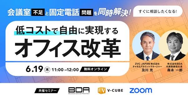 株式会社ブイキューブ(本社:東京都港区、代表取締役社長:間下直晃、以下 ブイキューブ)は、ハイブリッドワークからの出社回帰が進む現在、オンラインを活用した多様な働き方や、従業員のパフォーマンス向上に不可欠なオフィス設計をテーマとしたオンラインセミナーを、2025年6月19日(木)11:00~12:00に開催いたします。