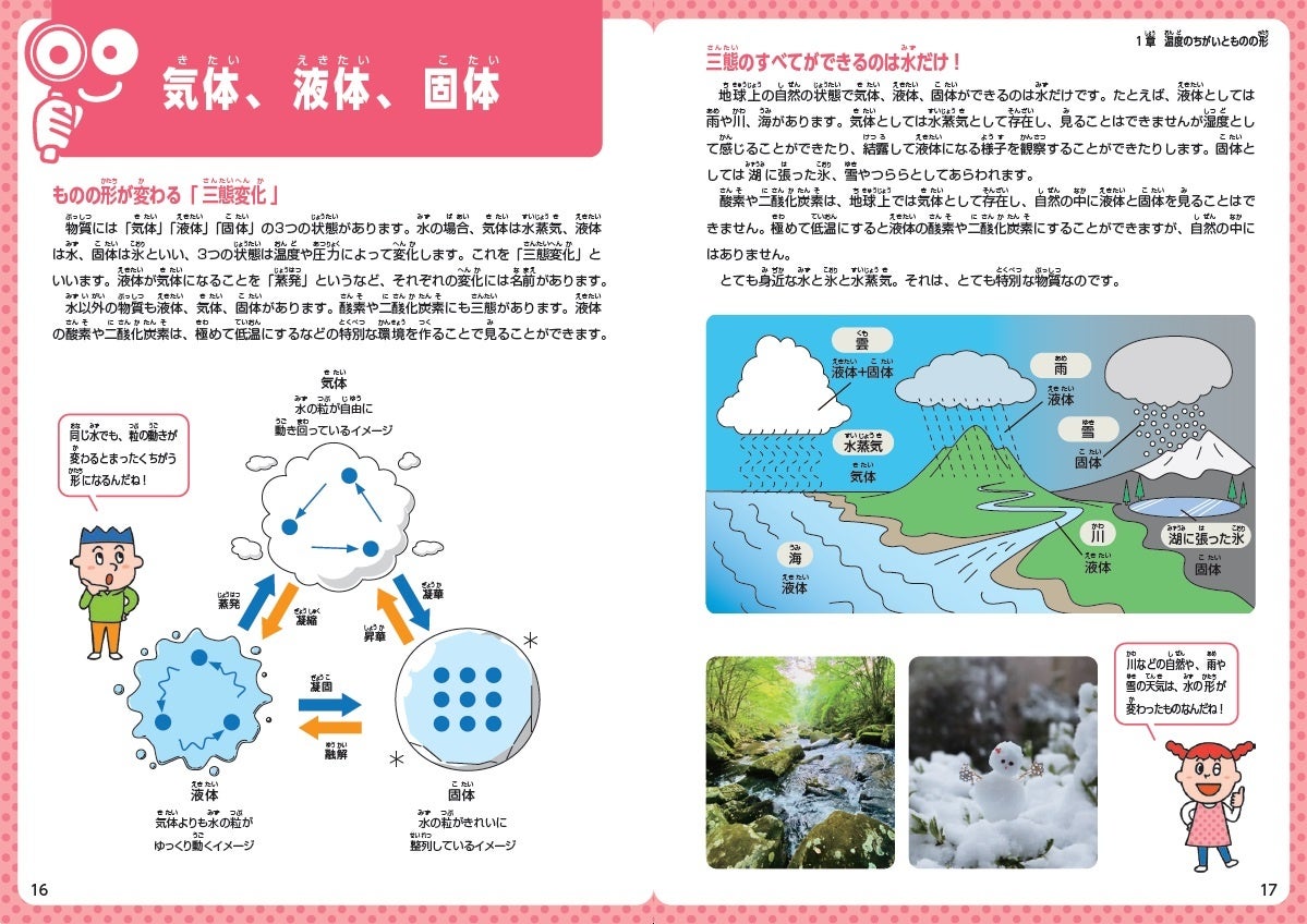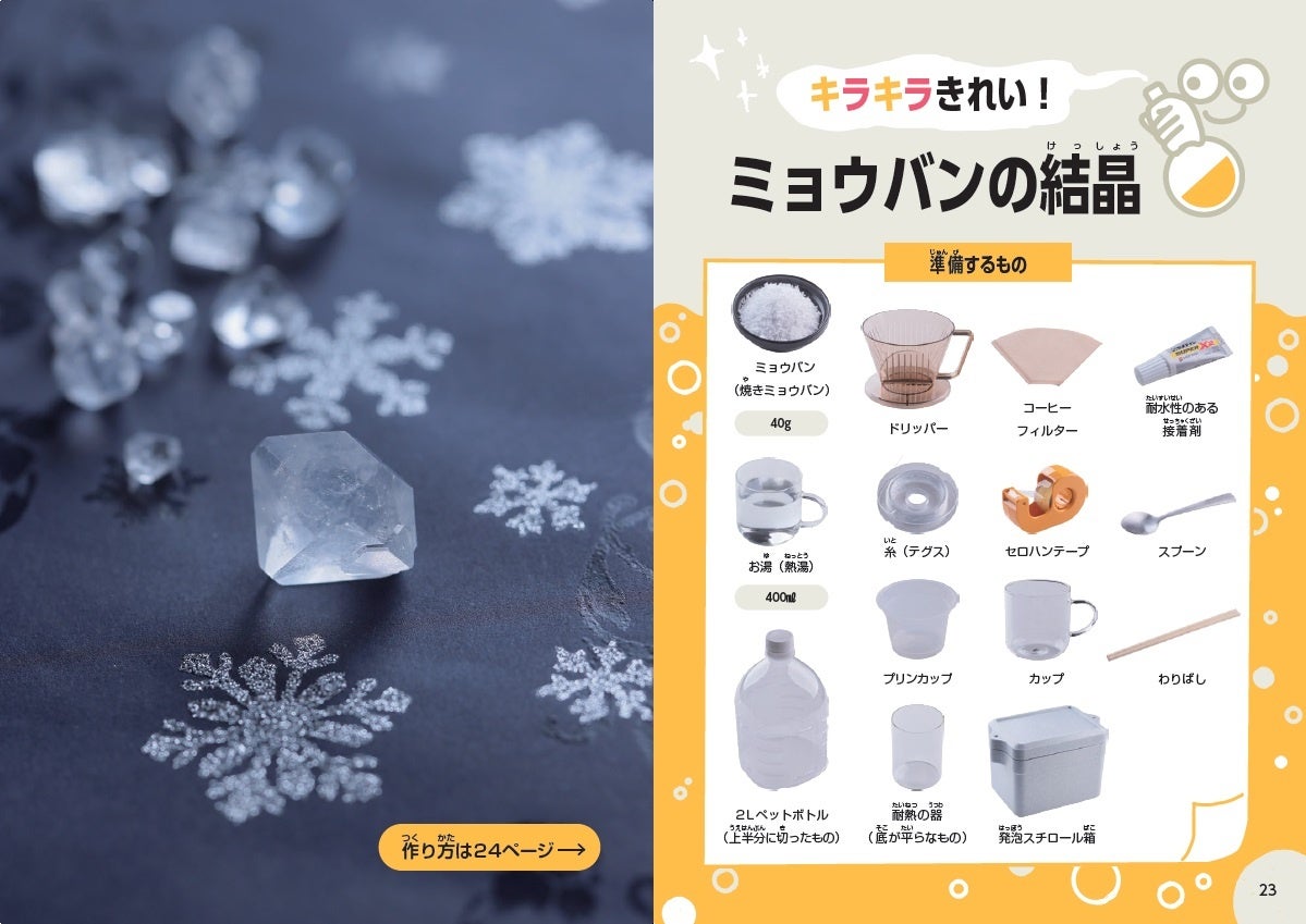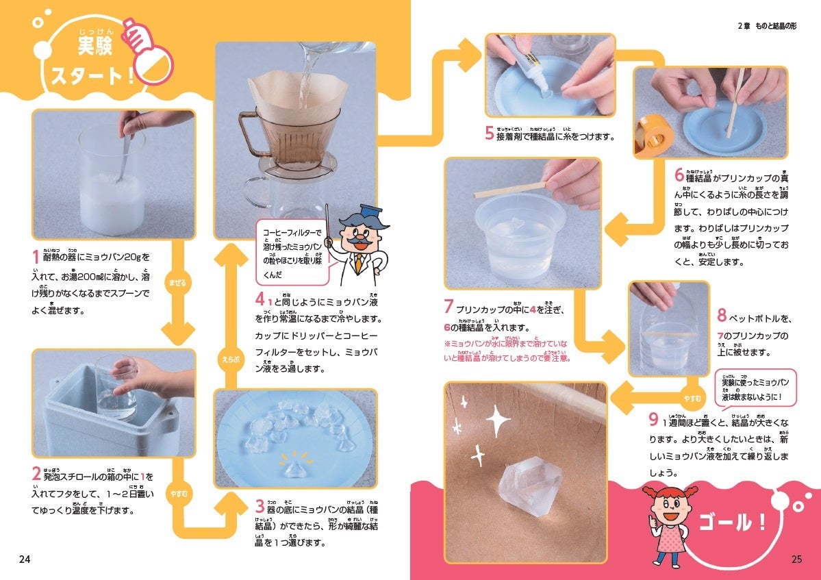 ミョウバンの結晶作りや炎色反応など、自宅で簡単に取り組める実験と、それに関連する科学・技術を、かわいいキャラクターと一緒に学べます。小学生のお子さんひとりでも読めるよう、漢字はすべてルビ付き。調べ学習や自由研究にもぴったりな1冊です。