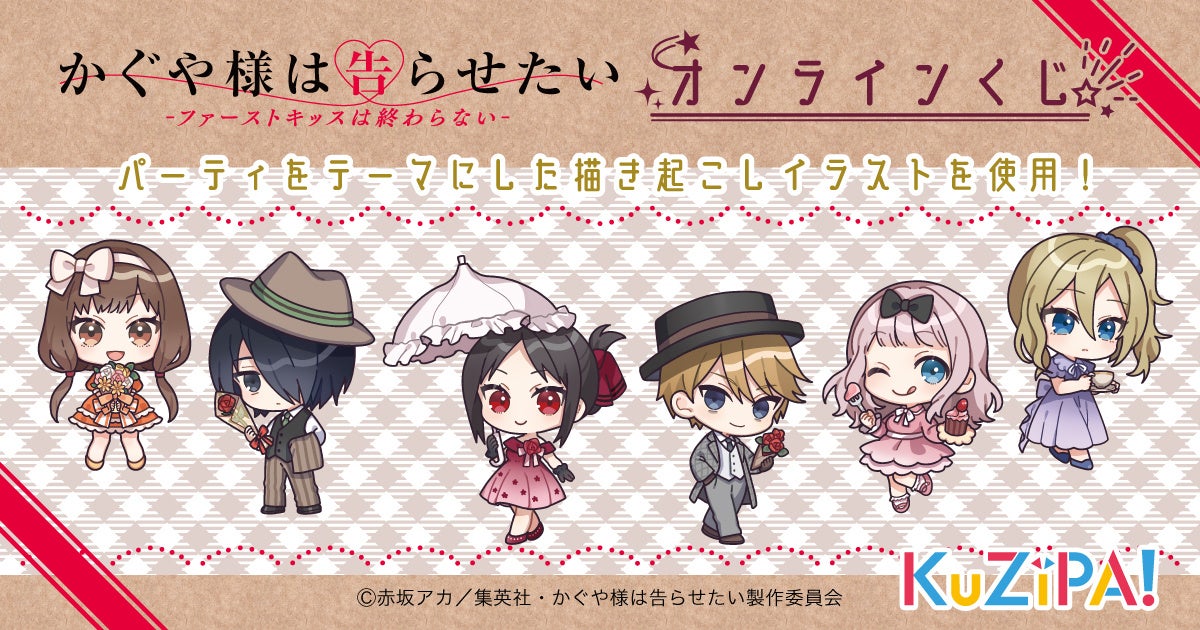アニメ「かぐや様は告らせたい-ファーストキッスは終わらない-」くじ販売決定!パーティがテーマの描き起こしキャラデザイン