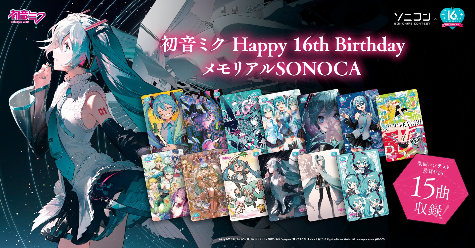 初音ミク16周年記念アイテムに音楽ダウンロードカード「SONOCA」が追加! 楽曲コンテスト受賞作品15曲を収録!