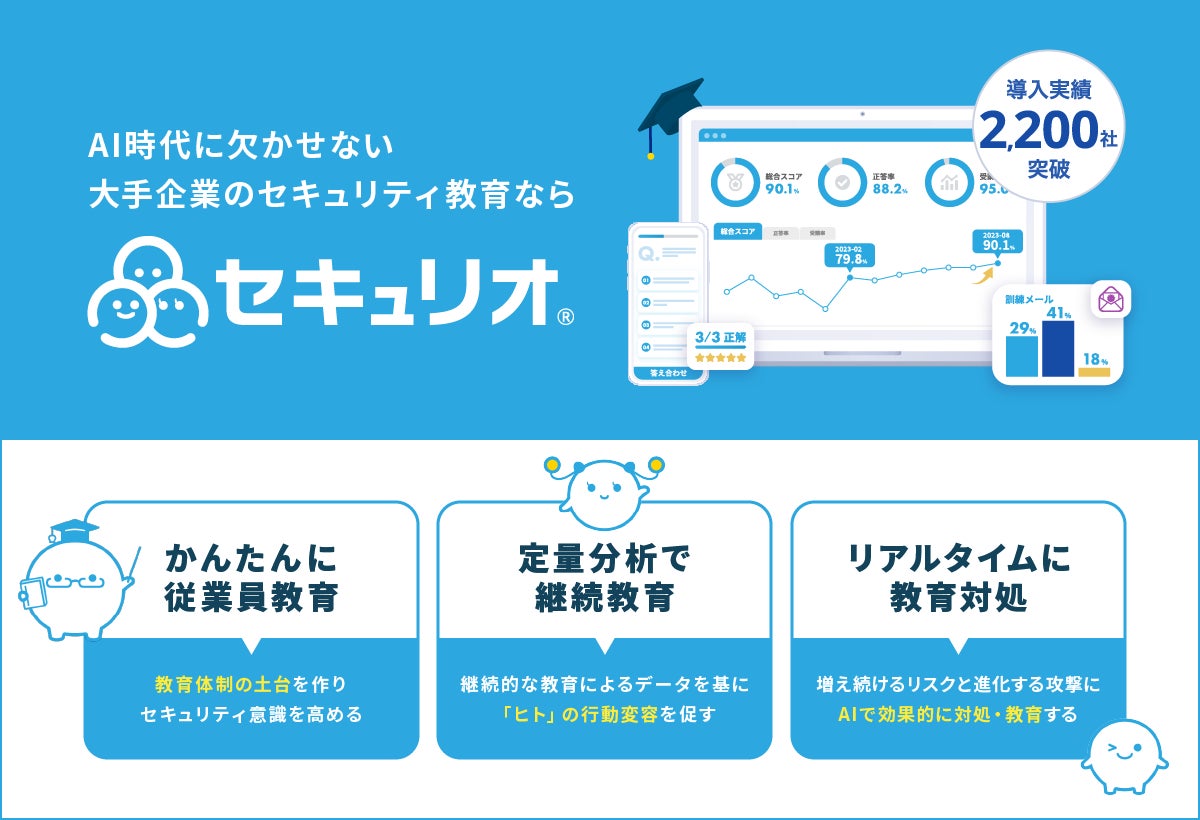 「セキュリオ」は、セキュリティ教育をだれでもかんたんに行うことができるクラウドサービスです。