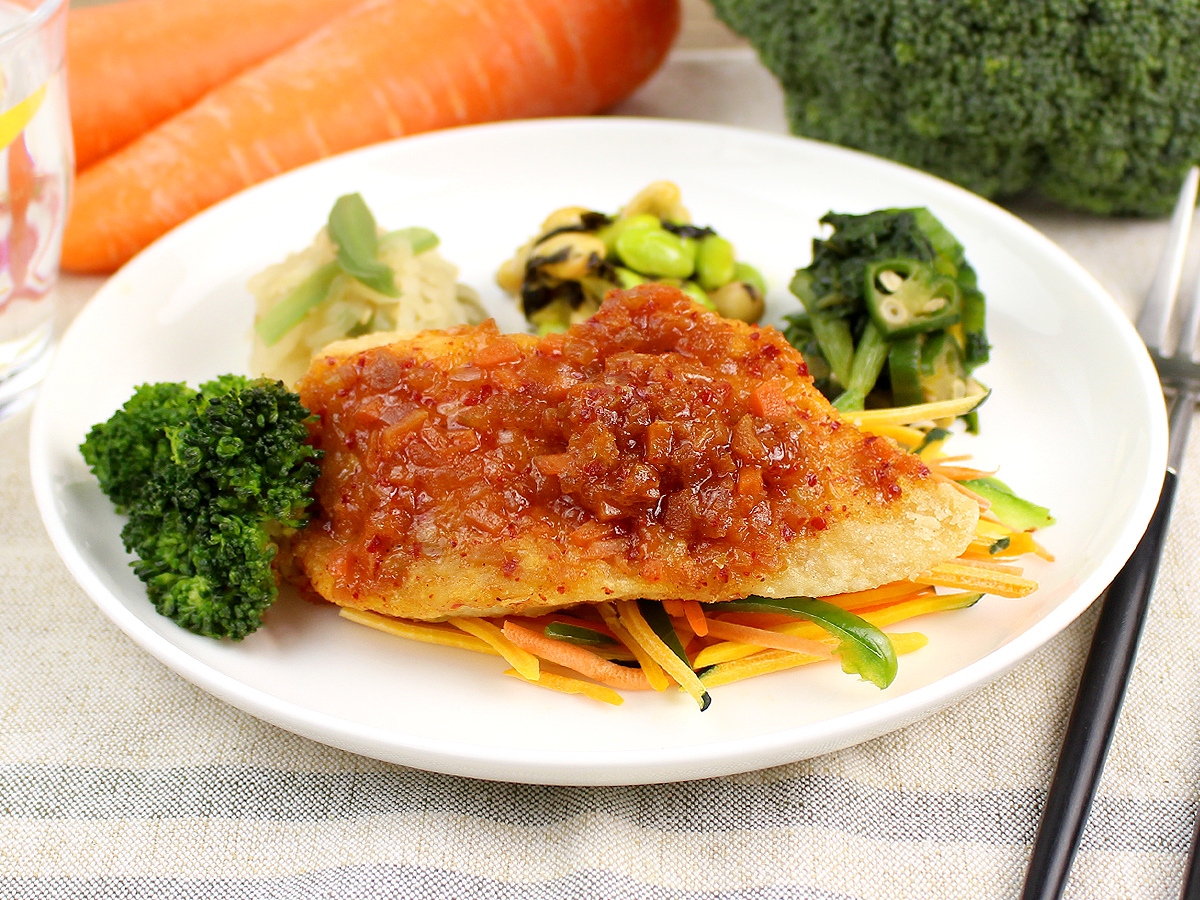 唐辛子・コチュジャンの辛さが食欲そそる「白身魚の辛味噌だれ」がナッシュから新発売