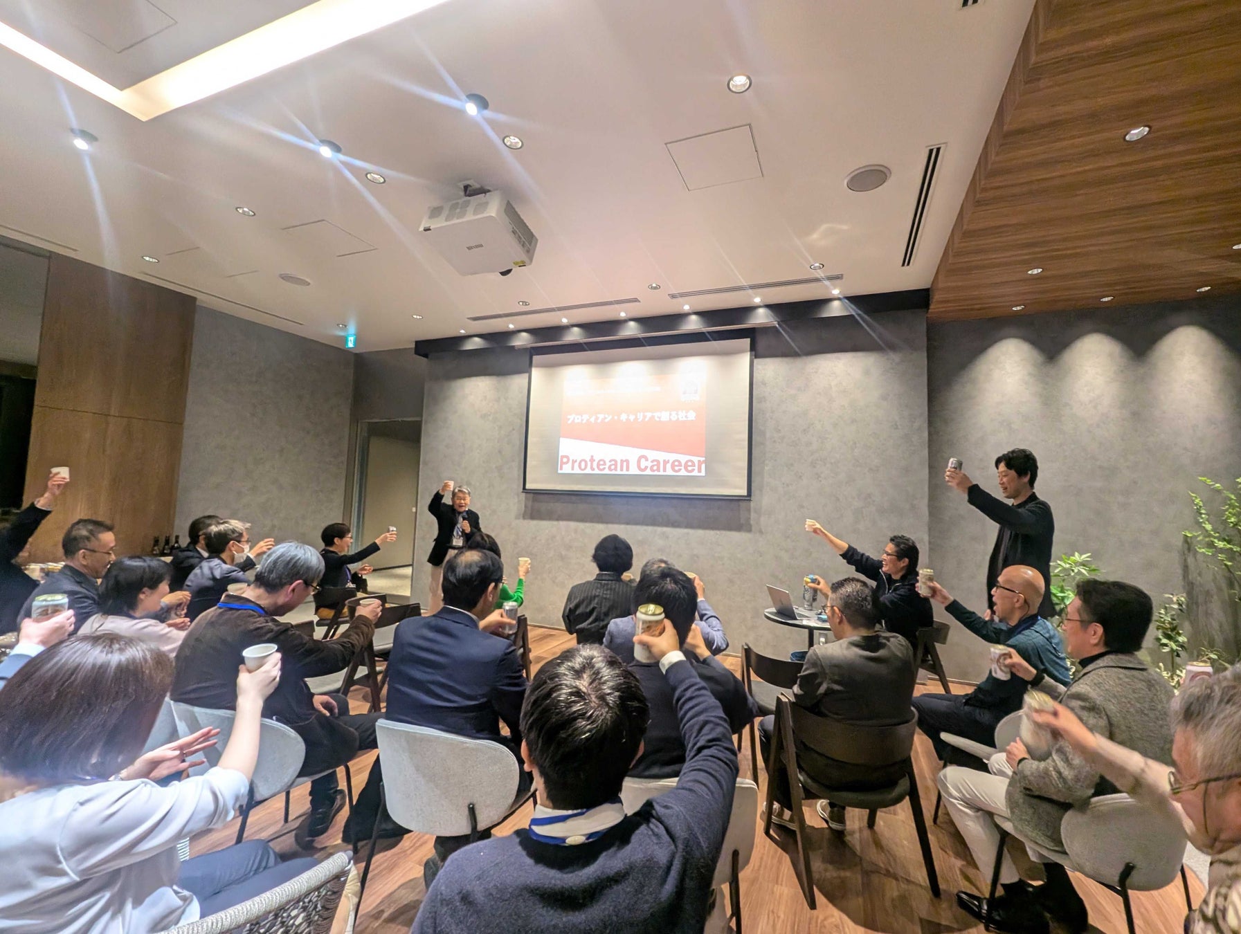 講演後には、多様な業界・職種でキャリア支援を行う当協会の認定メンバーが集まり、懇親会を開催いたしました。当協会は、今後も現代版プロティアン・キャリア理論に賛同いただく企業の皆様、パートナー企業の皆様、そしてプロティアン・キャリアの理念に共感し共に歩んでくださる認定者の皆様との対面での学びの場を増やしてまいります。