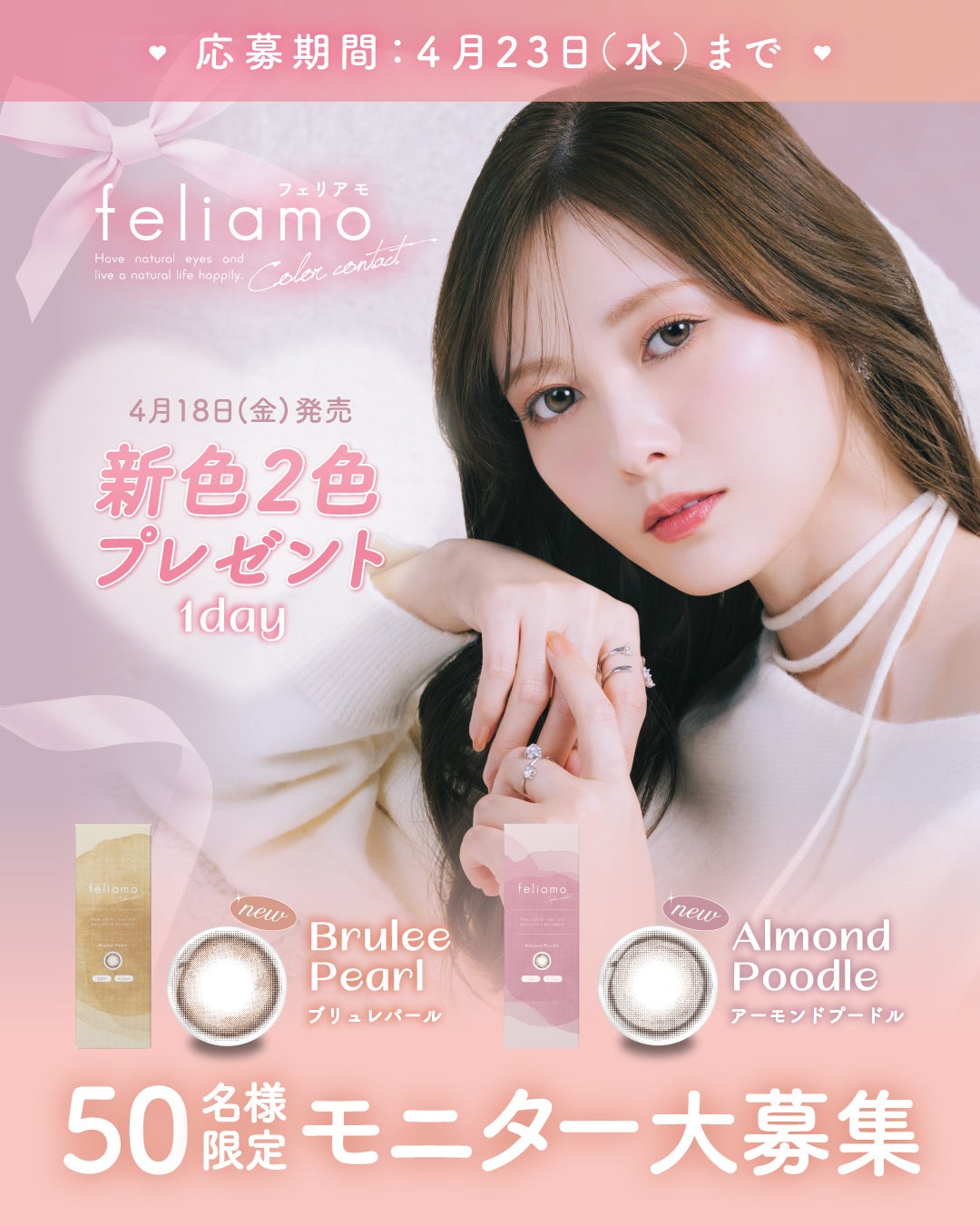 PIA株式会社(本社:東京都品川区 代表取締役:見原 博道)は、カラーコンタクトレンズブランド『feliamo(フェリアモ)』より、2025年4月18日(金)に新色2色を1day&1monthにて発売いたします。