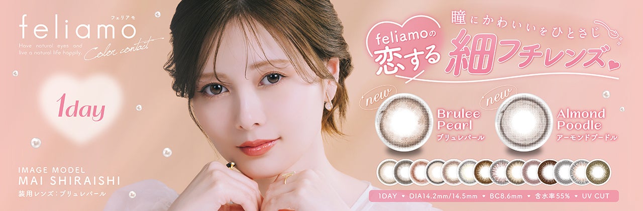 白石麻衣イメージモデルカラコン『feliamo(フェリアモ)』から新色発売決定!”瞳にかわいいをひとさじ♡”恋する細フチレンズ2色が1day&1monthで新登場!