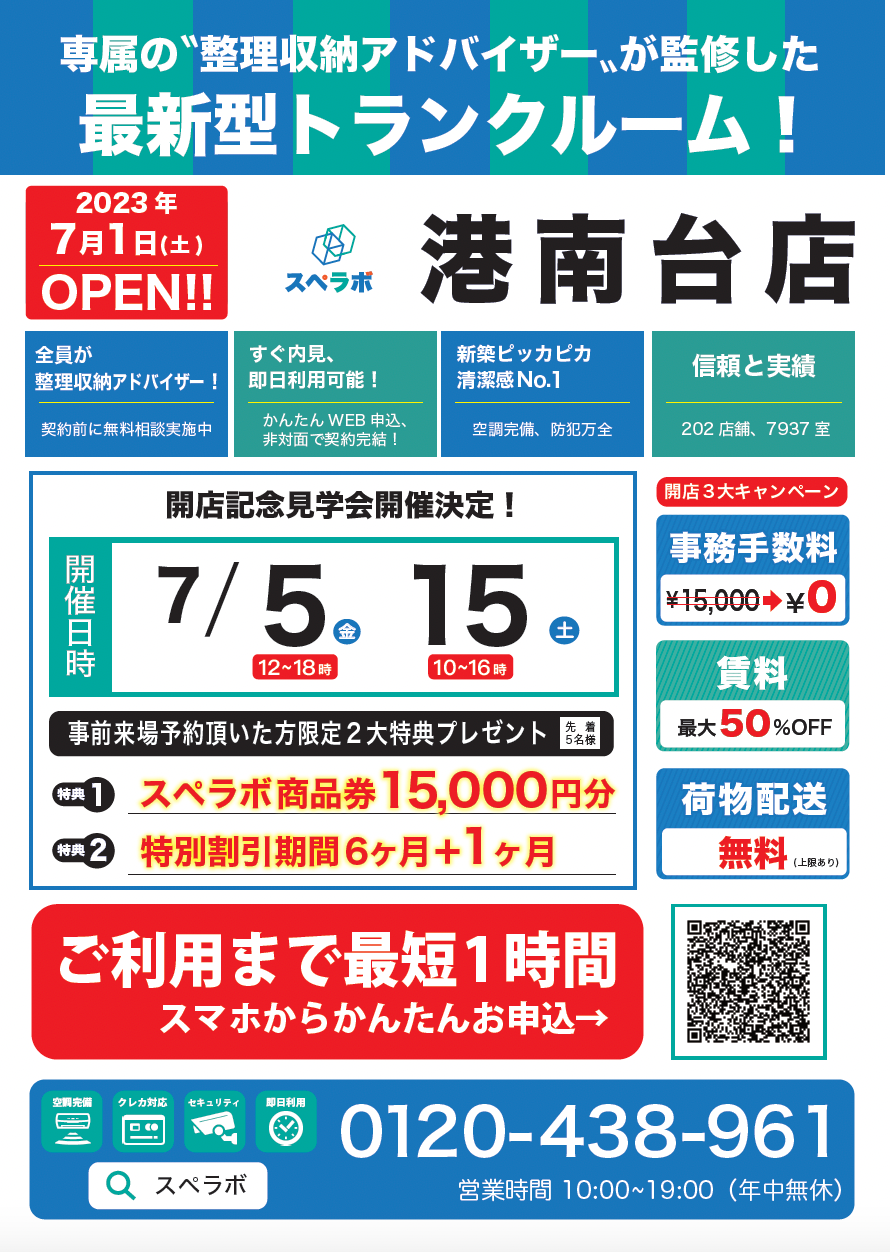 【港南台店/7月1日(土)オープン】見学から契約、解約まで完全非接触・非対面、お申し込みからご利用まで最短1時間!都内、大阪などにて絶賛運営中のトランクルーム【スペラボ】が港南台駅近くに出店!