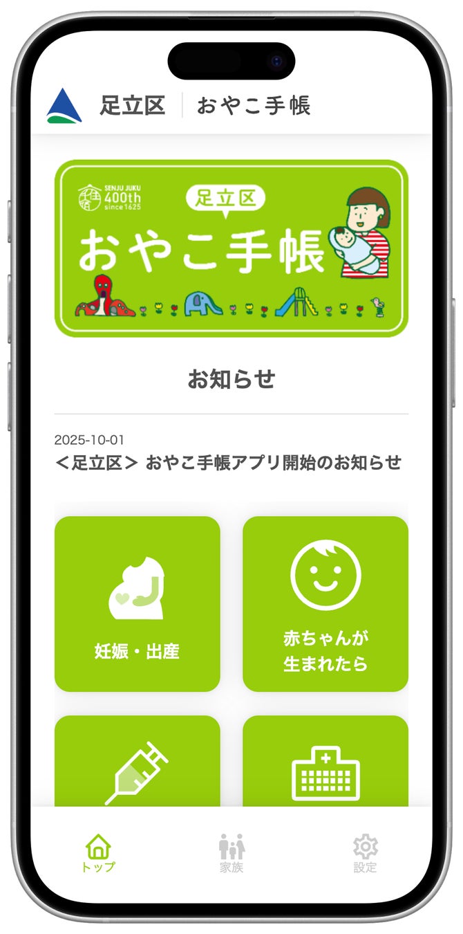 東京都 足立区で、母子手帳アプリ「mila-e おやこ手帳」提供開始