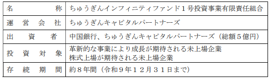 ちゅうぎんインフィニティファンドによる