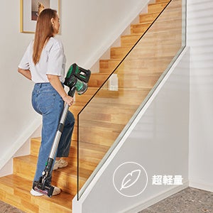 小柄な女性でも片手で楽に持ち上げられるので、どこへでも負担なく持ち運べます。腕への負担を低減し、快適にお掃除いただけます。