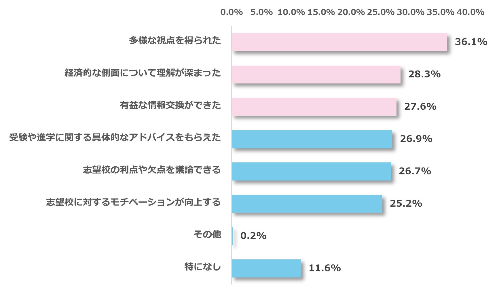 保護者に相談して得た収穫、最多は「多様な視点を得られた」