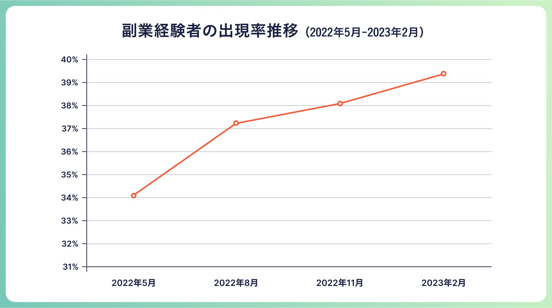 »2022年5月の調査開始より、副業経験者は右肩上がりに増加