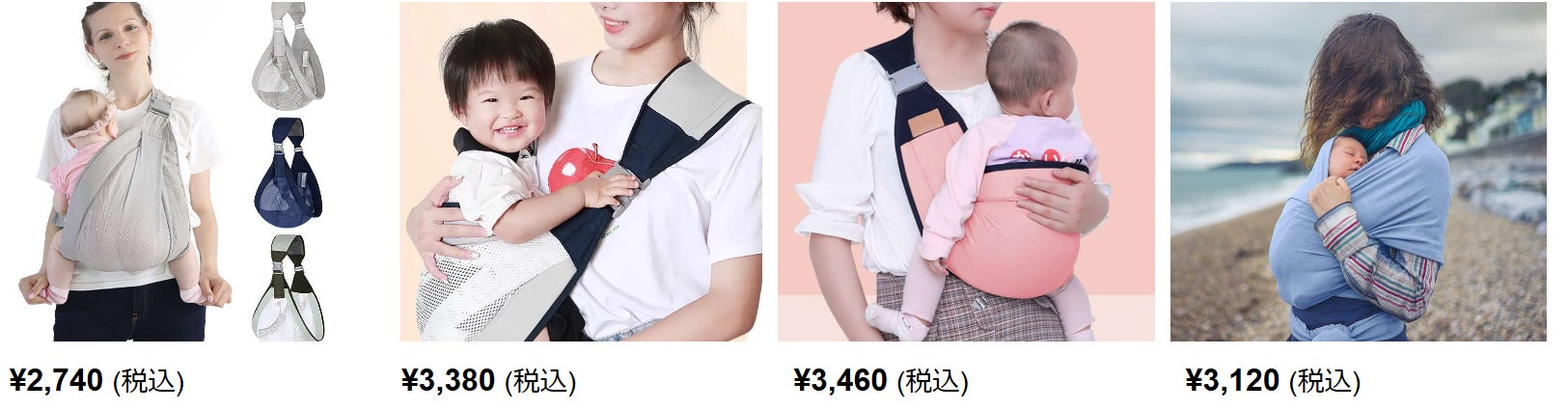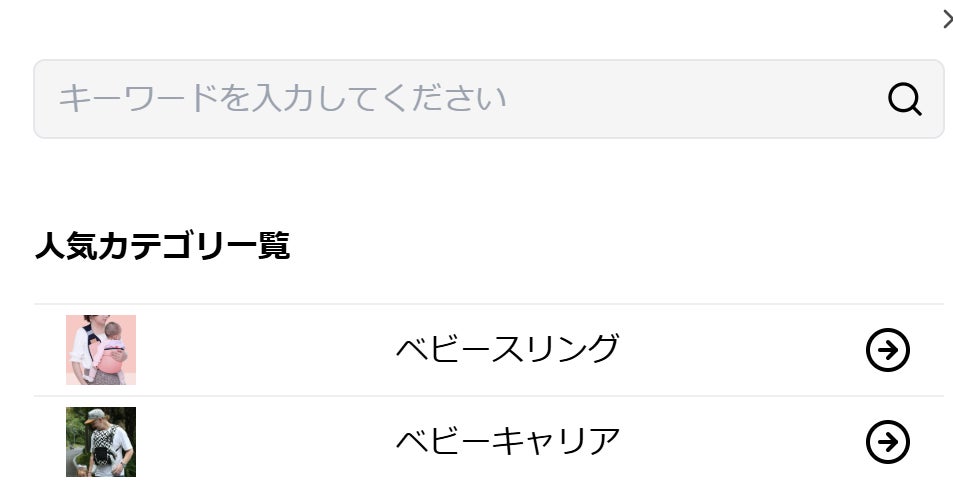例えば、「べビースリング」「べビーキャリア」といった条件から選ぶことができます。