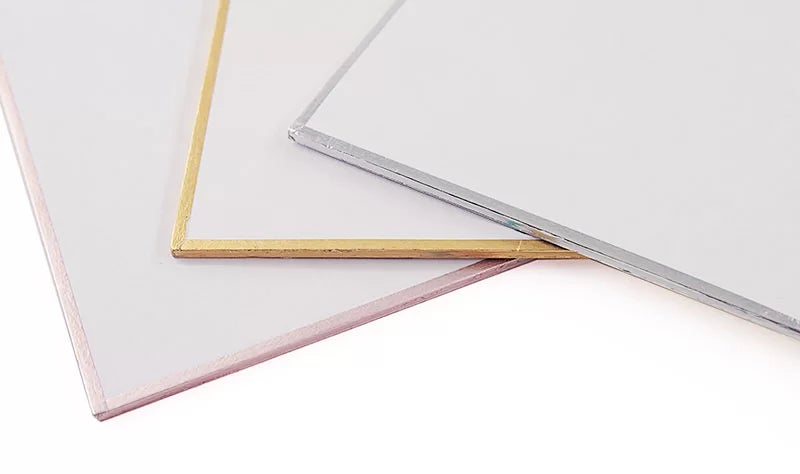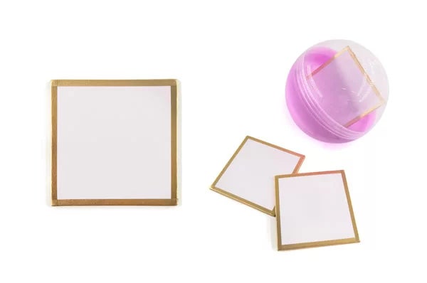 フチのカラーは高級感のあるゴールド、シルバー、かわいらしいピンクの3色展開。印刷デザインに合わせてお選びいただけます。