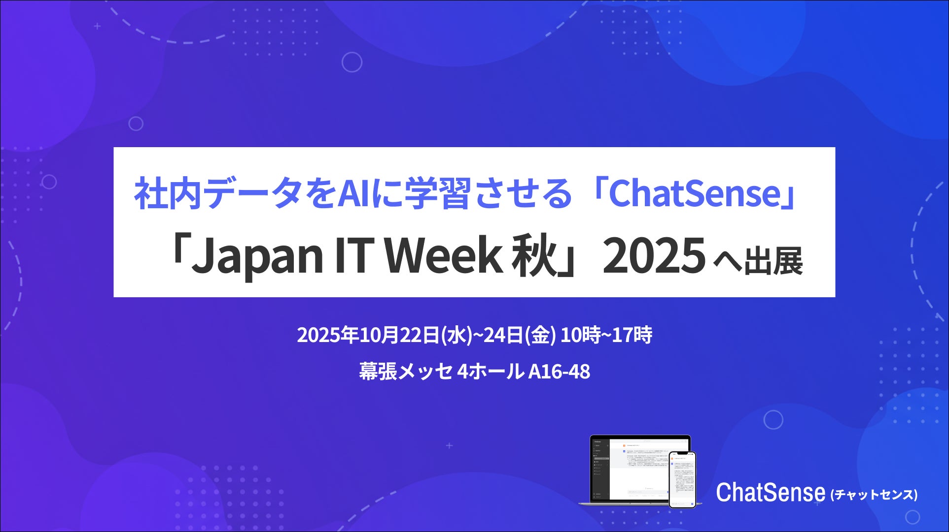 株式会社ナレッジセンス(本社:東京都港区、代表取締役:門脇敦司、以下ナレッジセンス)は、幕張メッセにて開催される「Japan IT Week 秋 2025」に出展いたします。