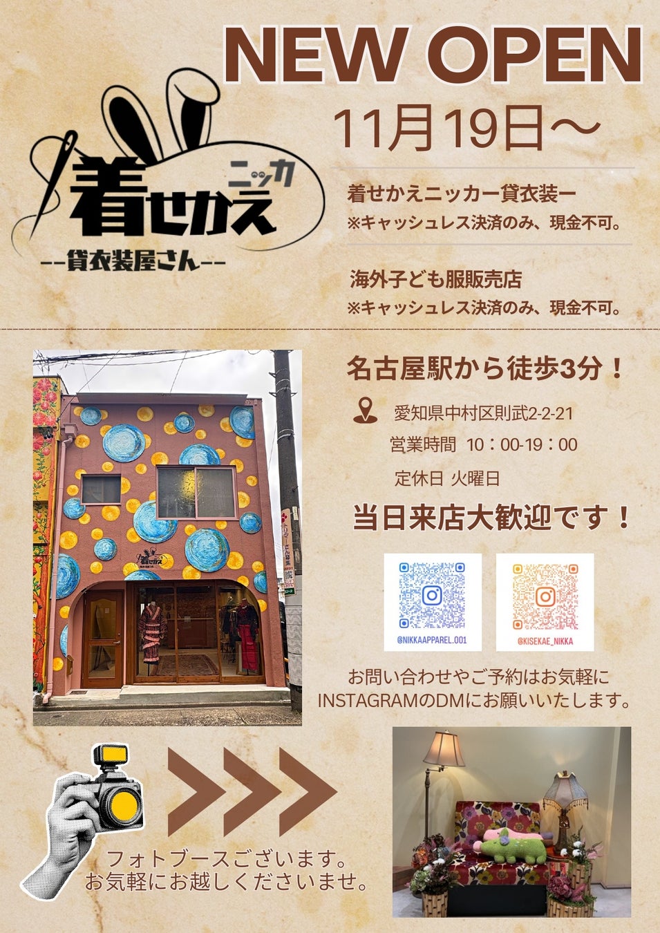 この度、住宅リフォーム事業を全国展開するニッカホーム株式会社は、新たにアパレル事業部を立ち上げ、創作リメイク衣装のレンタルおよびオーダー店「着せかえニッカ」を、2025年11月19日に名古屋駅近郊(愛知県中村区則武2-2-21)へオープンいたしました 。