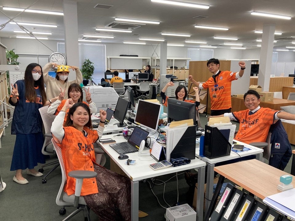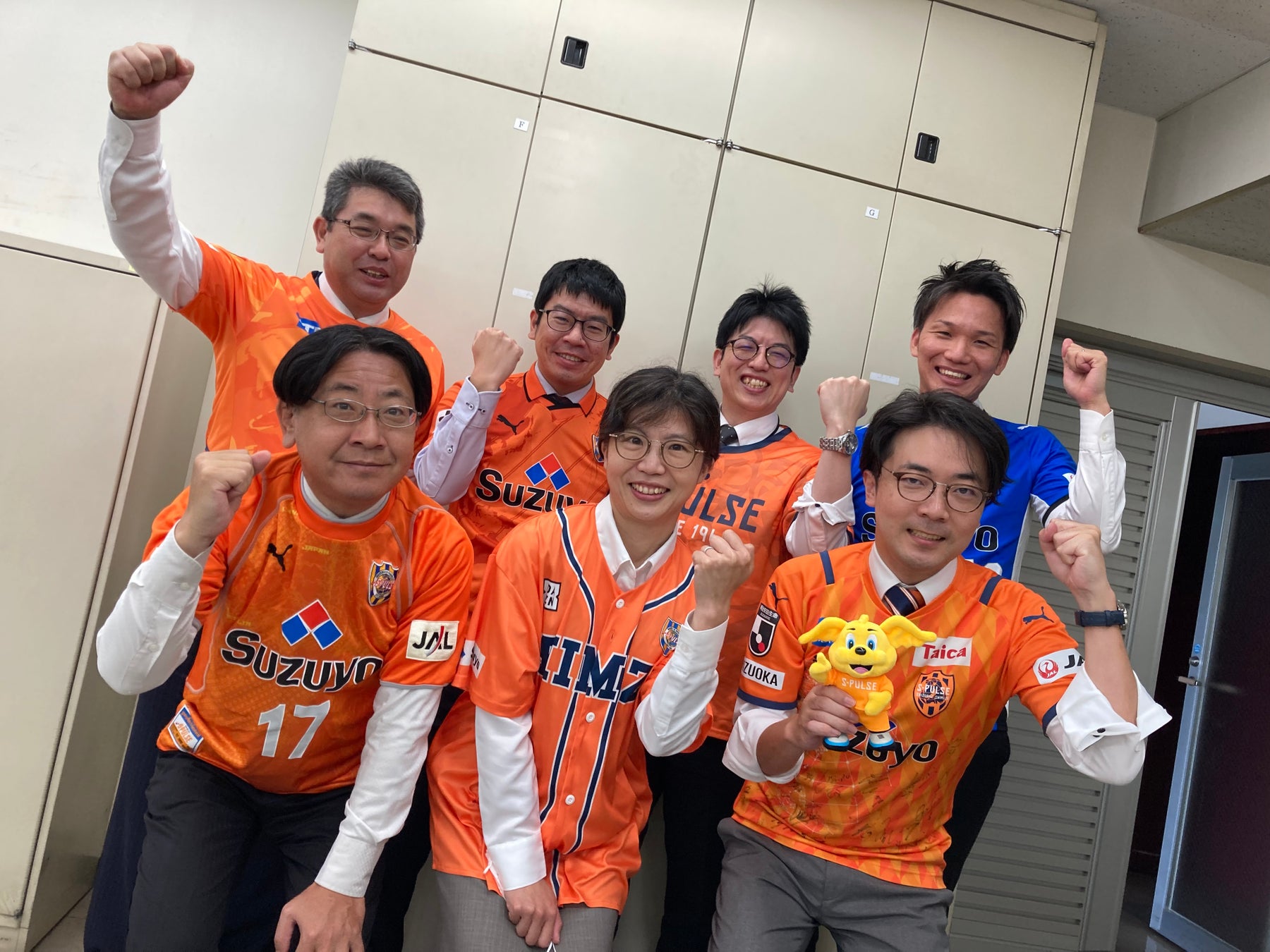 当日は、就業時間中に鈴与グループ従業員がエスパルスのユニフォームやグッズ、オレンジ色の物を着用して仕事に従事。応援意識の具現化により、社内の一体感醸成や従業員各自がエスパルスを応援する気持ちや愛着を再認識できたほか、企画実施の中心となった鈴与株式会社の本社では、普段と違う社内の雰囲気に自然と従業員同士の会話が生まれ、社内コミュニケーションの活性化にもつながりました。