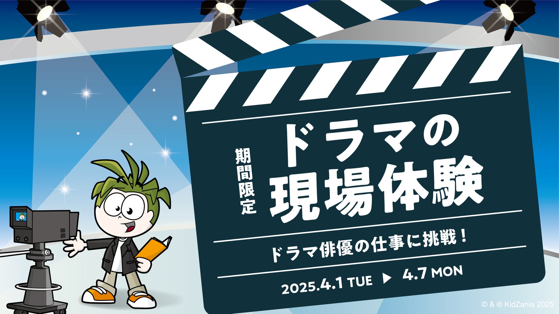 こどもの職業・社会体験施設「キッザニア」の企画・運営を行う KCJ GROUP 株式会社(本社:東京都中央区、代表取締役社長:圓谷 道成、以下 KCJ GROUP)は、株式会社TBSテレビ(本社:東京都港区、代表取締役社長:龍宝 正峰、以下 TBS)の協力のもと、2025年4月1日(火)から4月7日(月)まで、キッザニア東京(東京都江東区)にて期間限定「ドラマ制作スタジオ」パビリオン(以下 本パビリオン)をオープンします。本パビリオンでこども達は、4月から放送が開始されるテレビドラマ「キャスター」(テレビ局の報道番組を舞台にした内容)をモチーフにしたセットの中で、ドラマのワンシーンに出演するドラマ俳優の仕事が体験できます。