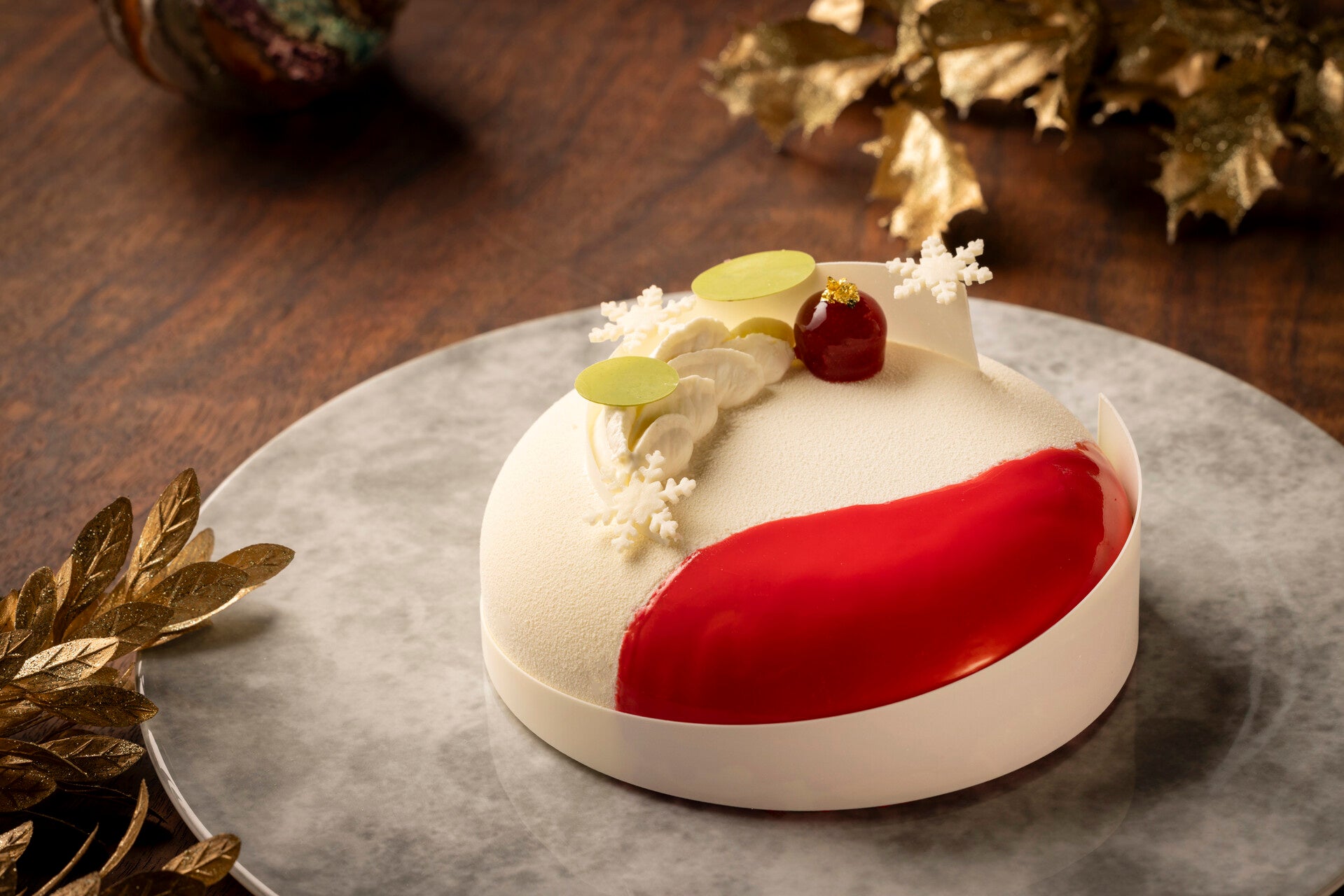 雪降る冬を連想させる純白のホワイトチョコレートケーキに、幸福をもたらすといわれる神聖な木「ヤドリギ」のデコレーションが映える印象的なケーキです。国産いちごとラズベリーの色鮮やかな赤色と甘さひかえめな高級チョコレートヴァローナ社のホワイトチョコレート「オパリス」で聖夜を彩ります。