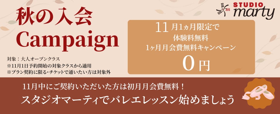 バレエレッスンを1か月無料で受けられる11月限定のお得なキャンペーン