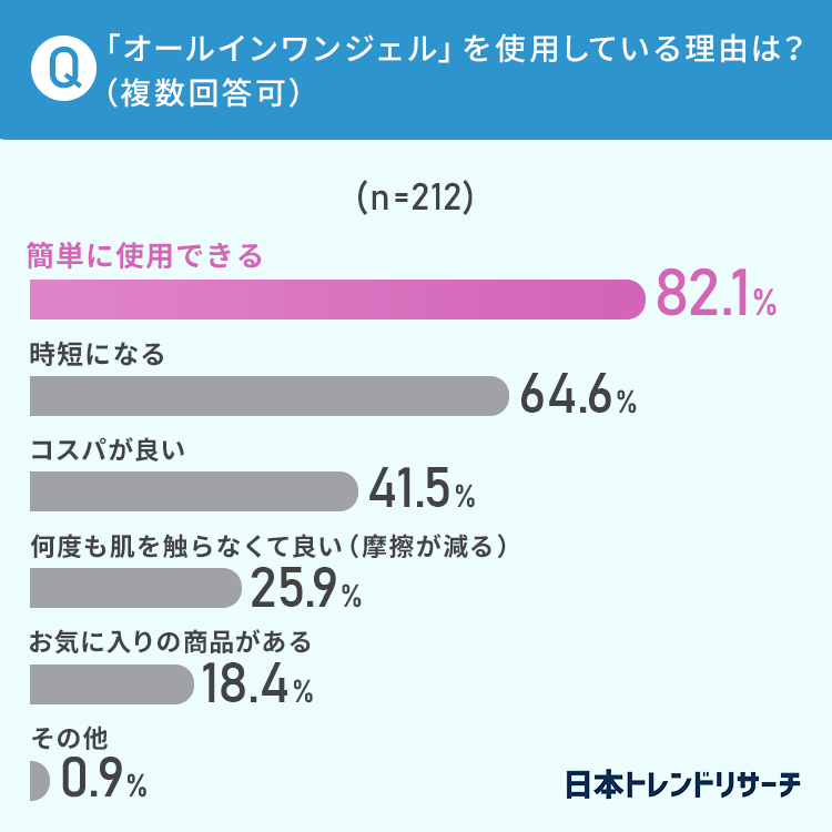 質問2:「オールインワンジェル」を使用している理由として、当てはまるものをすべて選んでください。(複数回答可)