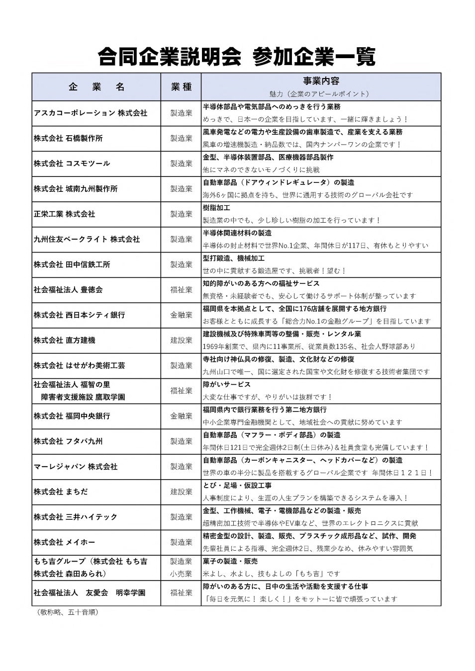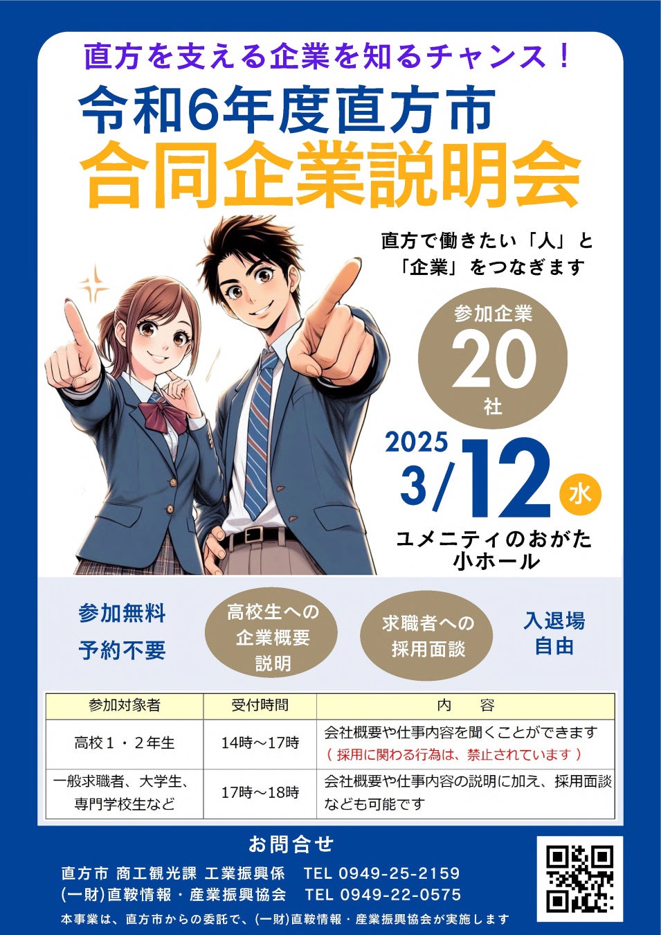 直方市では、下記の日程で市内の高校生を主対象とした合同企業説明会を開催いたします。