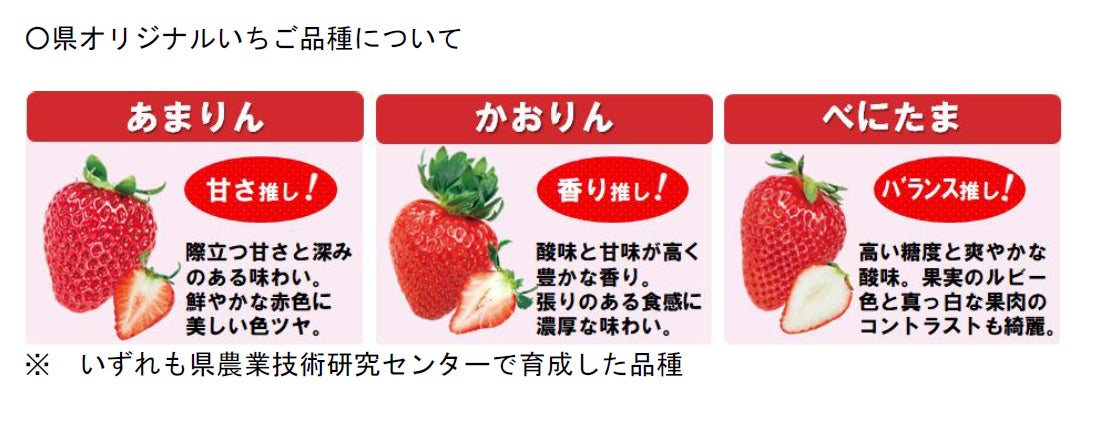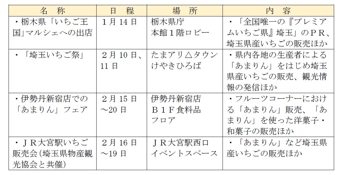 また、今シーズンは埼玉県産いちごの魅力発信のため、様々なイベントを開催します。是非、埼玉県のおいしいいちごを味わってみてください。
