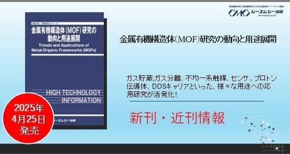 株式会社シーエムシー出版(本社:東京都千代田区神田錦町1-17-1、代表取締役:金森洋平)は、 『金属有機構造体(MOF)研究の動向と用途展開』(定価:税込67,100円)を、2025年4月25日に発売いたします。 本書籍は当社ECサイトおよび全国の書店にてご購入いただけます。