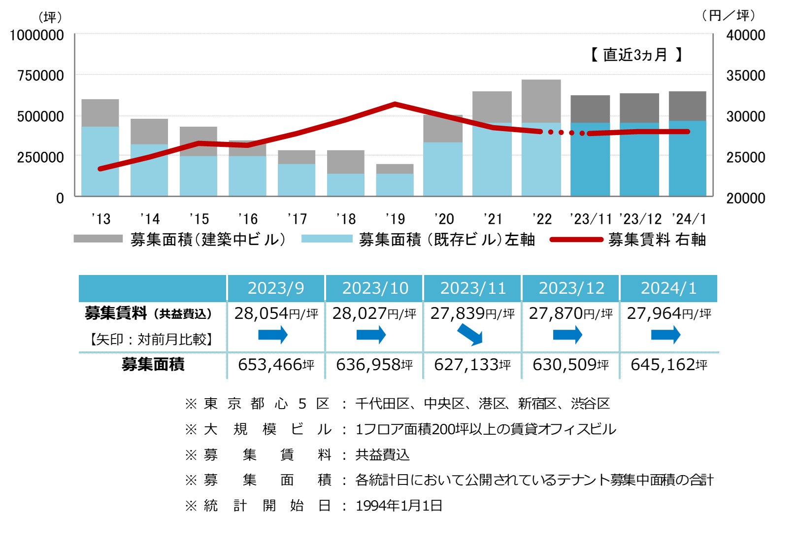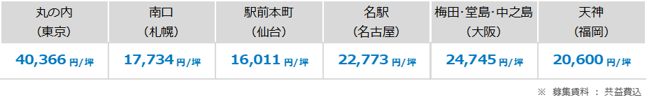 東京都心5区 大規模ビル 募集賃料&募集面積