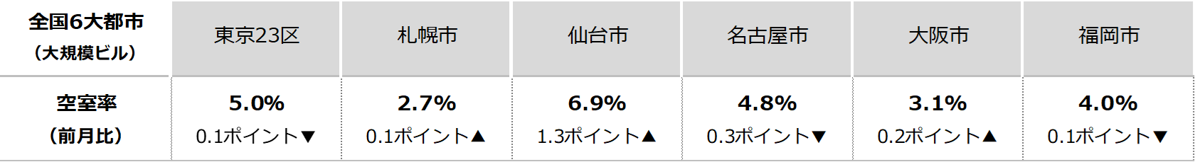 6大都市 空室率 募集賃料(大規模ビル)