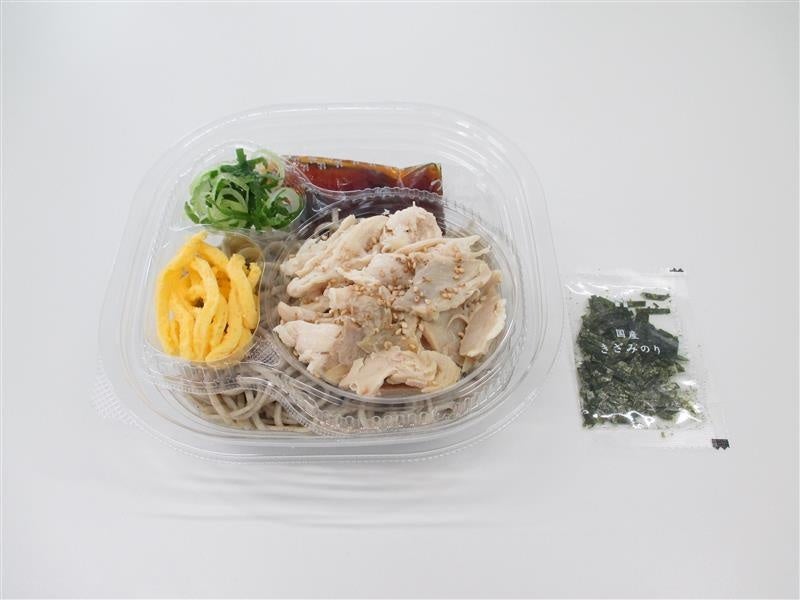 静岡県になじみのある出汁と甘めのつゆがポイントの冷たいそば。2種類の鶏肉(むね肉・もも肉)で食感の違いも楽しめる商品。