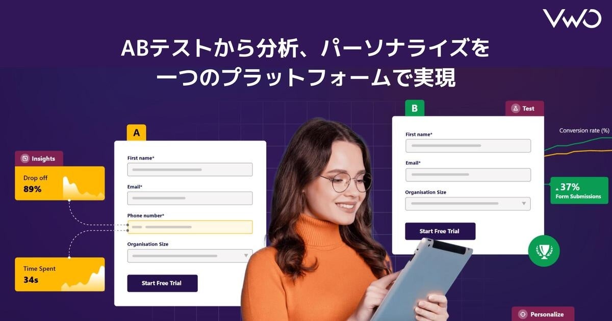 VWOでは、ほとんどのケースでコーディング不要でABテストを実施できるほか、セッションリプレイやヒートマップなどのユーザー行動を分析する機能を提供しています。さらに、さまざまなユーザーグループに向けてカスタマイズされたコンテンツを表示するパーソナライゼーション機能も提供しており、VWOはあらゆる最適化のニーズに対応するワンストップソリューションとなっています。
