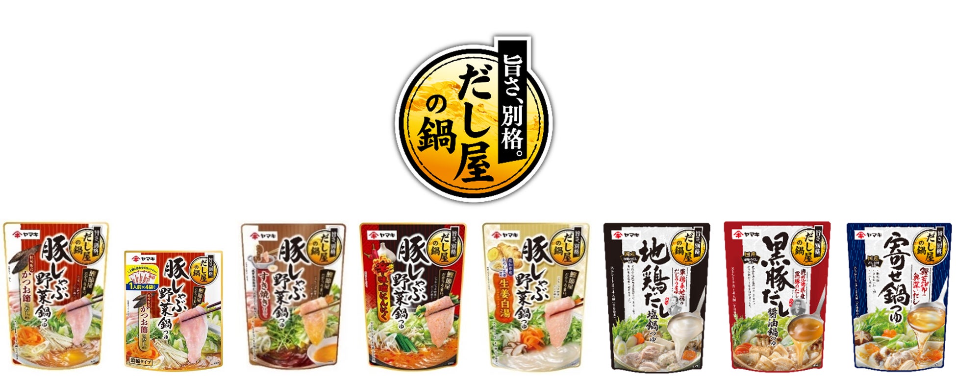 コロナ禍による内食機会の増加により、鍋つゆ市場は2020年度に大きく増加し、2021年度もその需要をキープ(※1)しています。特に、簡単に準備ができ、すぐに食べられるしゃぶしゃぶは、鍋つゆカテゴリの中で最も大きく伸長し、1人あたりの購入額は2017年比で9倍となりました(※2)。鍋つゆの販売を開始してから今年で20周年を迎えるヤマキは、これらの市場ニーズを踏まえ、「豚しゃぶ野菜鍋つゆ」シリーズから「豚しゃぶ野菜鍋つゆ辛味噌にんにく750g」、「豚しゃぶ野菜鍋つゆ生姜白湯750g」、「豚しゃぶ野菜鍋つゆかつお26g×4袋」の3品を発売いたします。ヤマキがお届けする『旨さ、別格。だし屋の鍋』は “本格だし”で、豚肉を美味しく食べられることが特長です。
