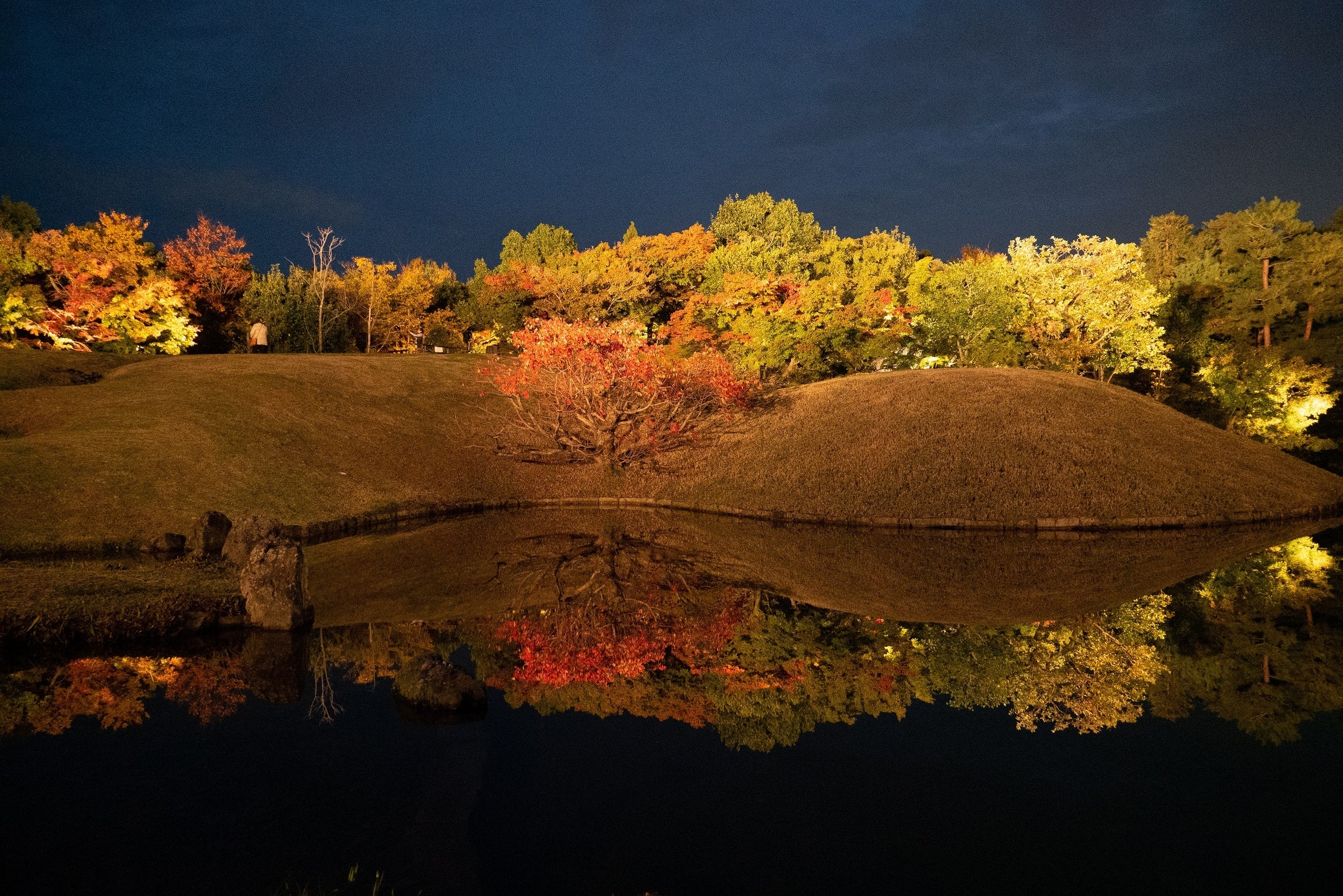 京都駅から徒歩で行くことができる「梅小路公園」 では、昼間はレジャーシートを持参してピクニック、夜にはライトアップする紅葉を見ることもできます。