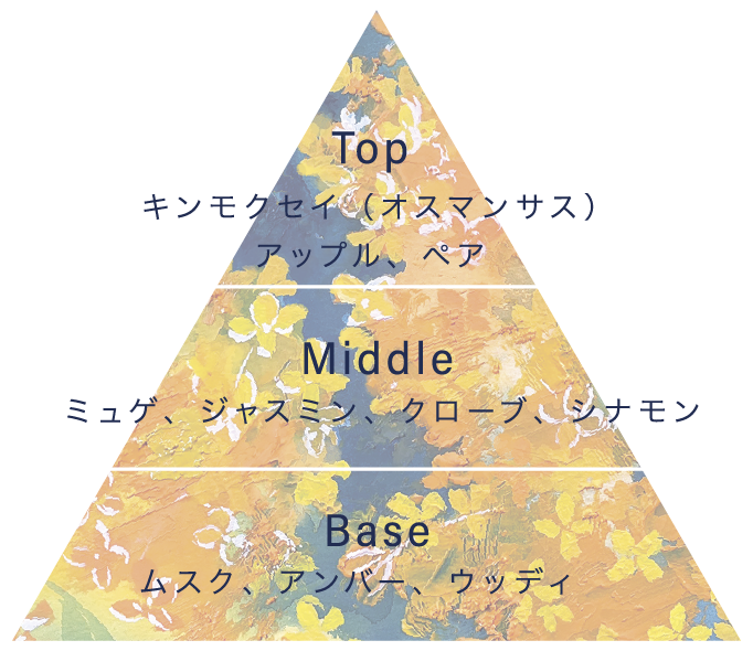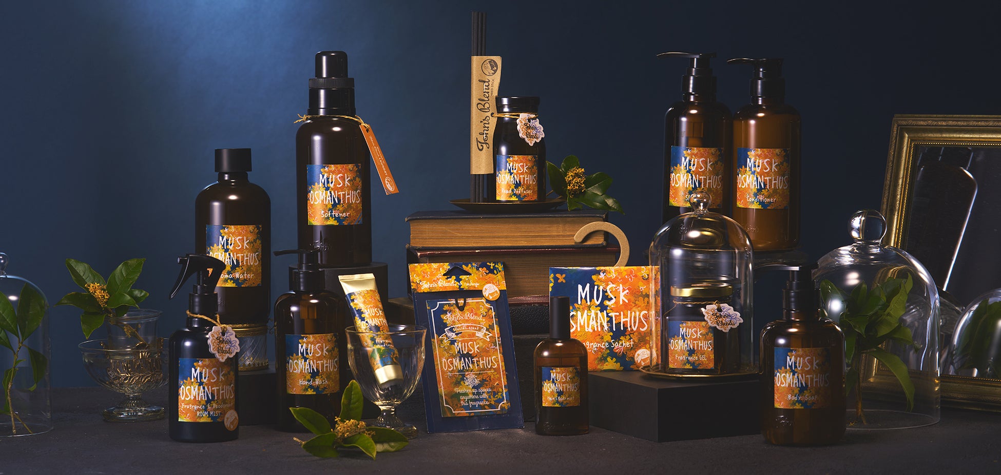 少しずつ肌寒くなる秋の季節に、華やかな甘さのキンモクセイとムスクの香りを暮らしに添えてみませんか。