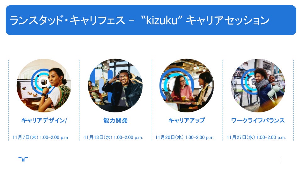 総合人材サービスを提供するランスタッド株式会社(本社:東京都千代田区 代表取締役社長 猿谷哲)は、社員のキャリア開発を支援するための社内イベント「Kizuku キャリア」を、2024年11月7日~27日まで4回にわたり初めて開催いたします。社員が社内のロールモデルとの対話を通じて、自身のキャリア形成を改めて考え自らの可能性や課題に「気づく」こと、そして自分のキャリアライフを能動的に「築く」ことを目的に実施するもので、従業員に対する会社の価値提案(EVP*¹)の活動の一つとして実施いたします。