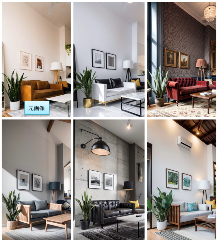 AI が部屋の写真を元に、思い描いたイメージのインテリアに変身させます。スカンジナビアン、インダストリアル、ウッド、和風、トロピカル、ヴィンテージ、モノクロ、ボヘミアンなど、8種類のスタイルが搭載されています。いつもの住み慣れた部屋を新しいインテリアデザインに変えてみましょう。