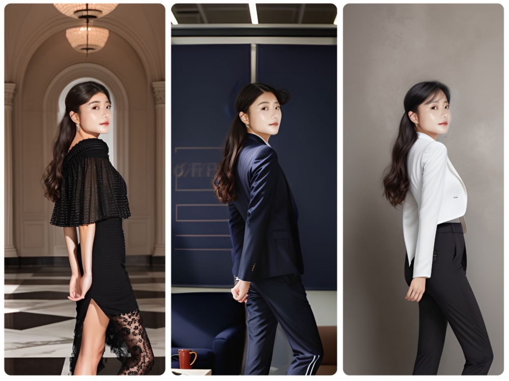 AI技術により、さまざまなフォーマルウェアを着た自分のイメージを生成できます。ビジネススーツからイブニングウェアまで、今まで試みたことのない新しいスタイルの自分を見ることが可能です。高価なフォーマルウェアを購入せずに「試着」できます。