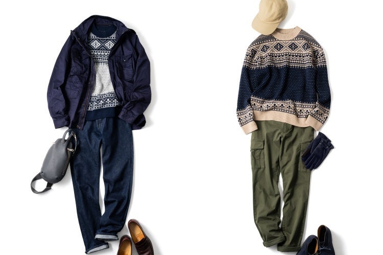 1、大人なフェアアイル柄✕ほどよいルーズシルエットがおしゃれ