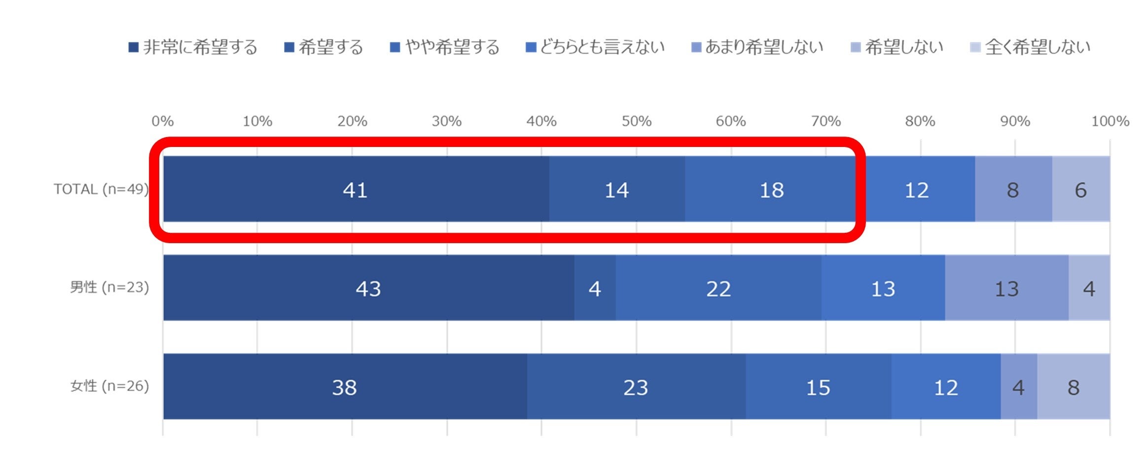 【図6】73%(36/49人)が「濃い色(黒や紺など)の服を着る」ことを希望する(非常に希望する、希望する、やや希望するの合計)