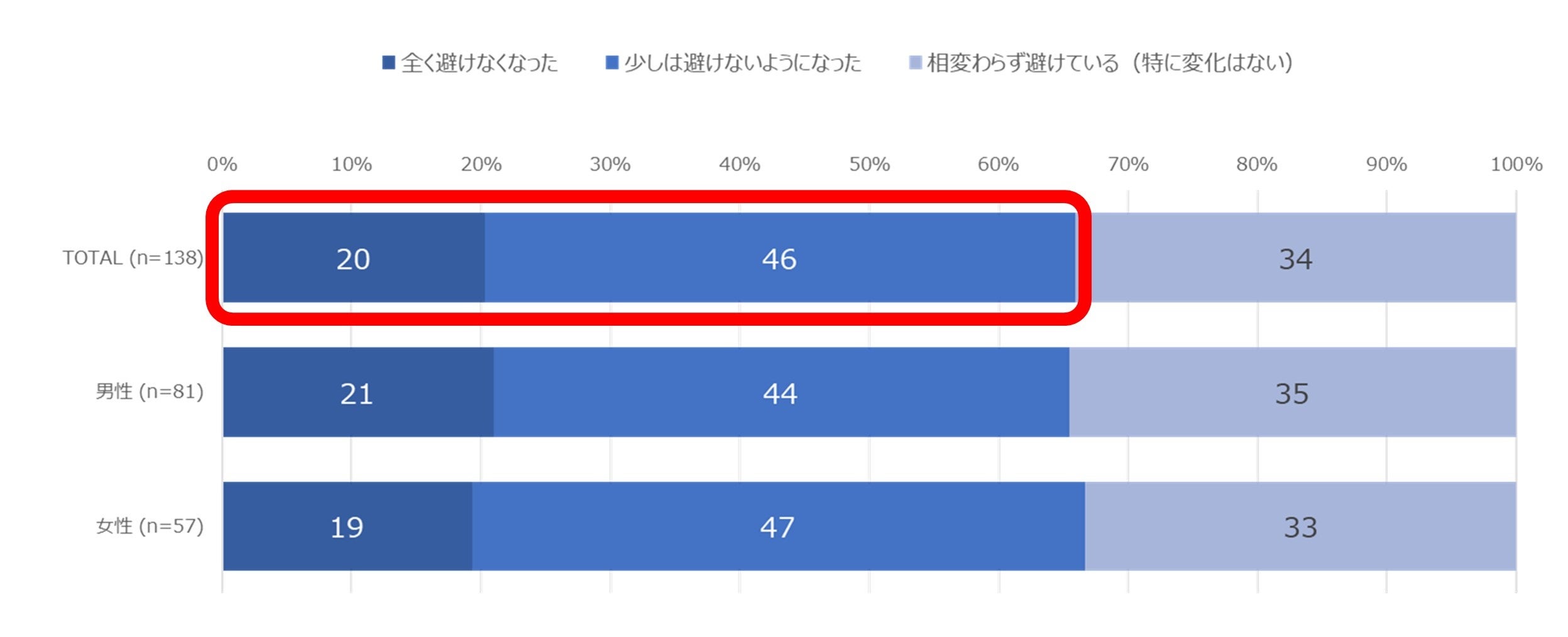 避けた経験がある人の7割が医師に相談、うち計66%は回避行動に変化