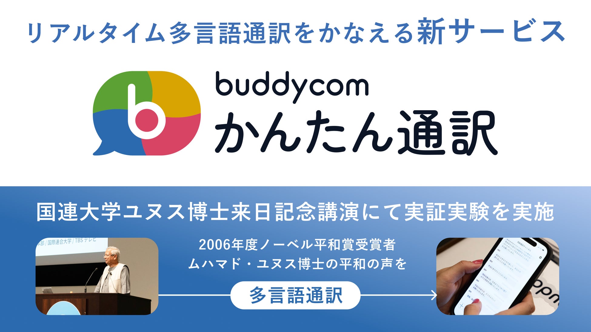 リアルタイム多言語通訳の新サービス「Buddycomかんたん通訳」、NPO法人アース・アイデンティティー・プロジェクツ主催「YUNUS GLOBAL FORUM 2026 TOKYO」にて実証実験