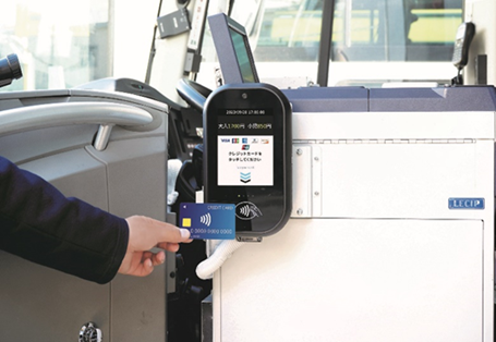 クレジットカードやデビットカード等のタッチ決済による乗車ではICカードへのチャージが不要となり、お客様がお持ちのタッチ決済対応のカードや同カードが設定されたスマートフォン等を新たに運賃箱に設置する専用の端末にタッチすることでスムーズにご乗車いただけます。