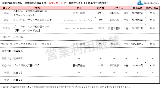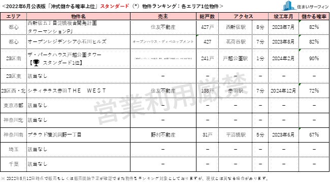 6月公表分は、2022年5月12日時点で販売もしくは販売予定が確認できた物件を対象としています。