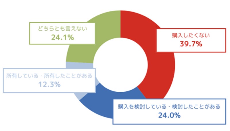 充電された電気だけで走行する電気自動車を購入したいと思うかを聞いたところ、「購入したくない」が39.7%でトップでしたが、「購入を検討している・検討したことがある」「所有している・所有したことがある」という回答が併せて36.3%とBEV車に対する興味や関心を寄せている人が一定数いることが分かりました。