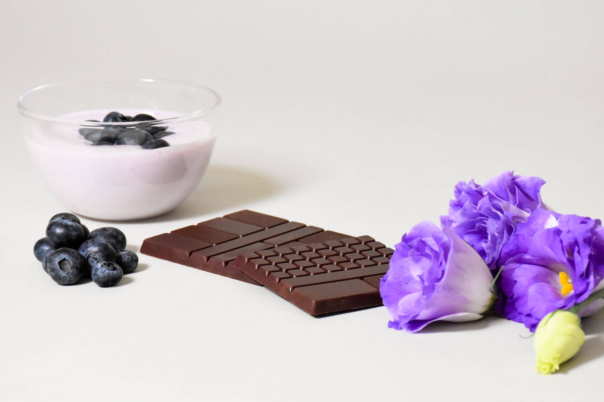 上部はフルーティーな果実感のあるブルーベリーのような味わい、下部はプルーンやフローラルな花のような香りが感じられる、同じ産地のカカオ豆ながら異なる2種類の味わいに仕立てました。