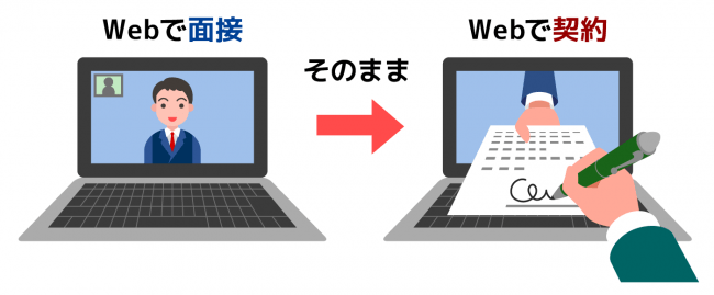 Web面接での採用活動時に問題となるのが、せっかく遠隔で面接ができても雇用契約などの書類のやり取りに結局来社が必要になったり郵送での対応が必要になってしまう点です。